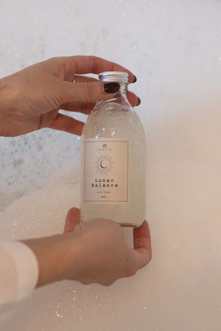 The Lunar Balance Bath Foam was created for women who are moving through full, busy, beautiful and often overwhelming lives, women who simply need a moment to reconnect with themselves, soften their breath and find a sense of steadiness again.